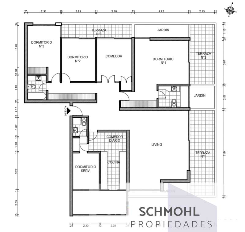 • Hall de Acceso • Living • Cocina. • Logia. • Dormitorio de Servicio.• Baño de Servicio. • Comedor separado. • 4 Dormitorios. • 3 Baños • Dormitorio Principal en suite.
